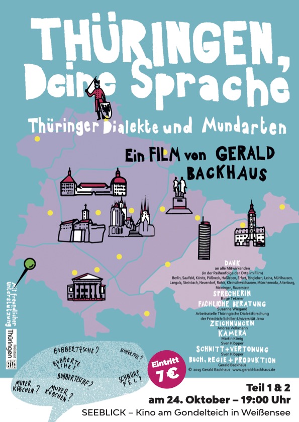 Jena: 21. April 2023 um 19 Uhr im Jugendzentrum Hugo (Winzerla), im Anschluss an den Film ein Podiumsgespräch mit Regisseur und Dialektforscherin Prof. Agnes Jäger, Uni Jena – am 10. Februar 2023 lief dort der erste Film