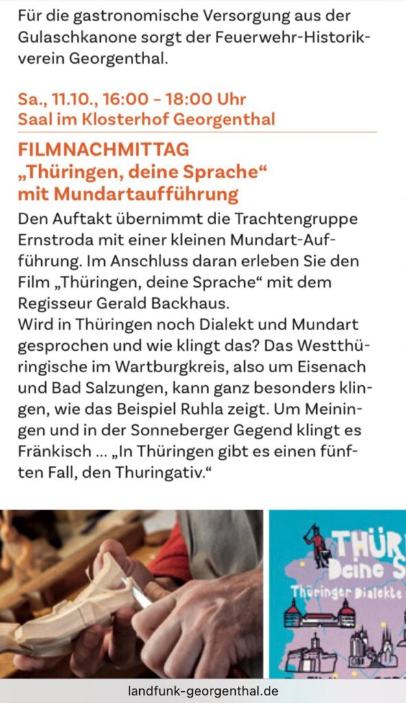 Gotha: 1. Mai 2025 um 15 Uhr zum THÜRINGENTAG 2025 im Kino Cineplex (am 2. und 3. Mai werden dort unsere anderen beiden Mundartfilme mit Filmgespräch gezeigt)